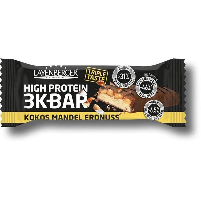 Verzehrempfehlung: Täglich 1-2 Layenberger 3K Protein Bar Triple Taste Riegel – z.B. vor, während oder nach dem Sport.